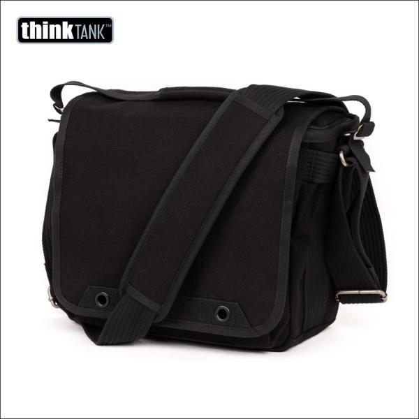 カメラバッグで有名なシンクタンクフォトのショルダーバッグで、生地は黒のキャンバス地で容量が結構あります。色は他にパインストーンがあって、そっちはもっとカジュアルな雰囲気です。